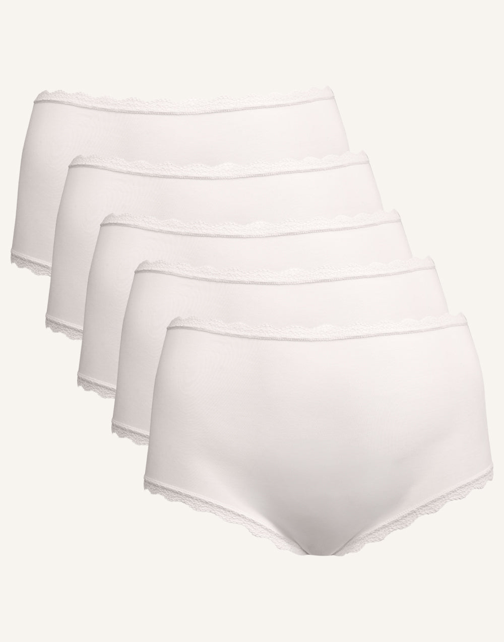 Mit diesem High-Panty-Set "Basic" machst Du alles richtig, denn es enthält gleich fünf unserer vielseitig kombinierbaren "Basic"-High-Panties in der Farbe Powder, die Dich bequem durch den Tag begleiten. Diese High-Panty vereint klassische Eleganz und Komfort. Dein Höschen für jeden Tag überzeugt mit einer unverwechselbaren Bequemlichkeit und der zarten Spitze am Bündchen und Beinausschnitt, die dem zeitlosen Design das gewisse Etwas verleiht. Durch den hohen Schnitt der High-Panty, wird Dein Po vollständig bedeckt.