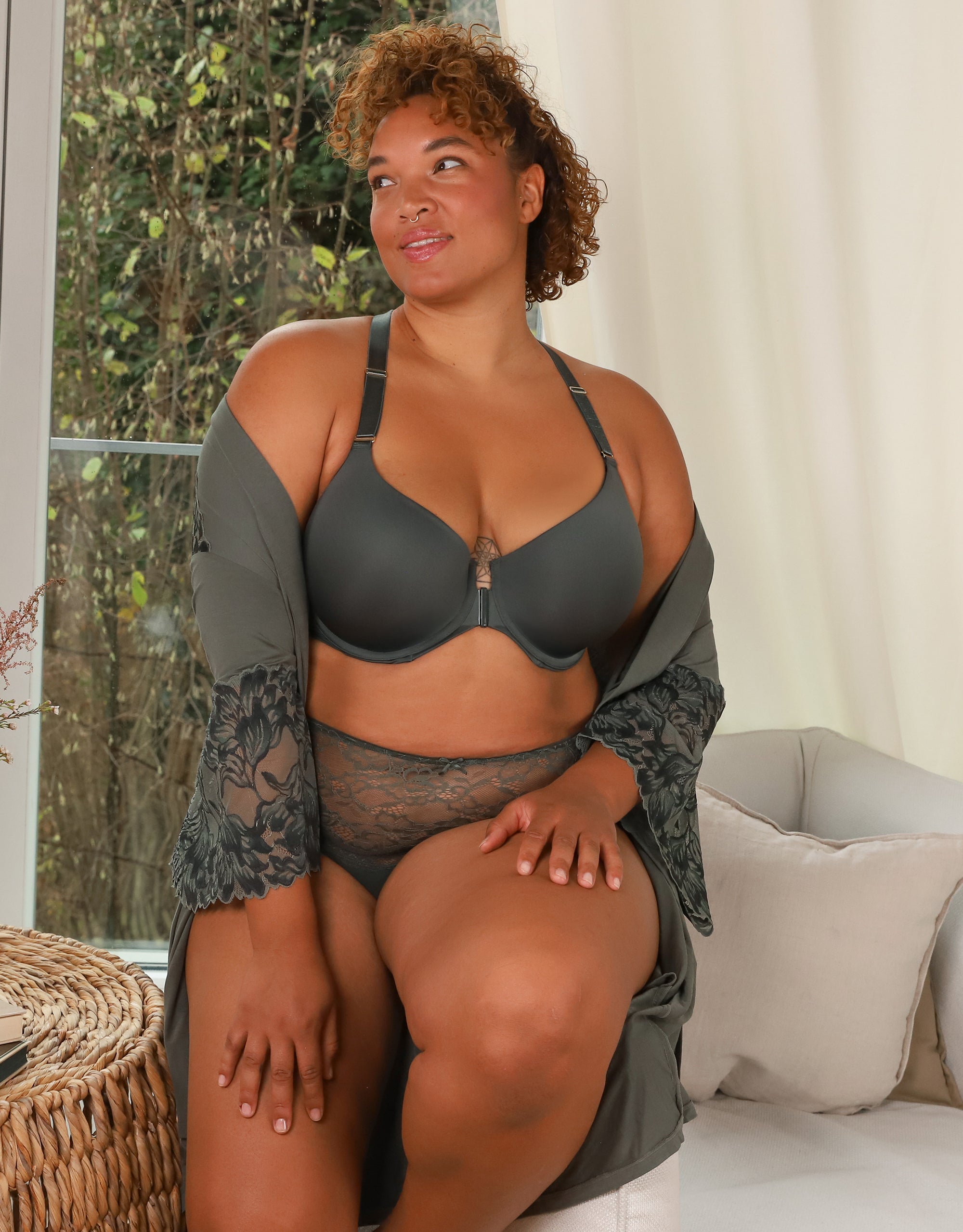 Erde Dich und komm gelassen durch den Tag - der Vorderverschluss-BH Pure Luxe olive unterstützt Dich dabei mit seiner edlen, ruhigen Ausstrahlung und macht alles mit.