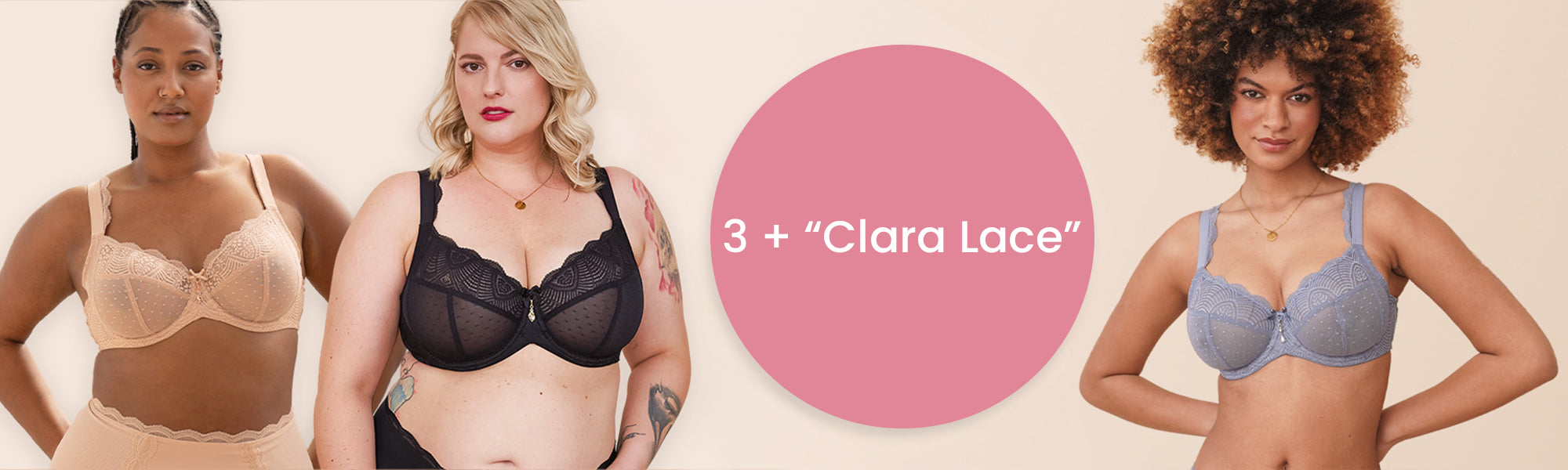 Choose at least 3 Clara Lace bras in the colors and sizes of your choice.