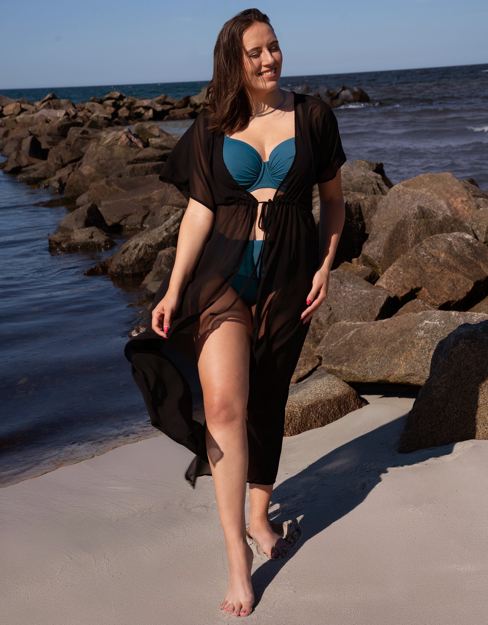 This dress is an uncomplicated companion for warm days, light and airy and flexible to wear. Wear it open like a kimono or closed with the drawstring at the front. You decide how much you want to show.